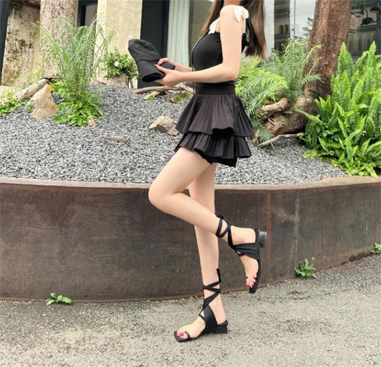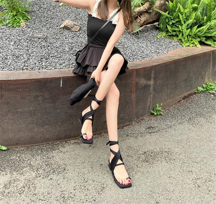 大幅値下 スクエアトゥ レディース 中太踵 バンディング オールシーズン ローマ靴 サンダル カジュアル