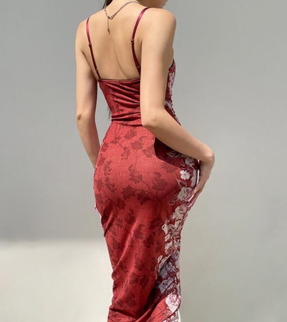 2024春夏新作 女 レディース ハイウエスト 袖なし 吊りスカート ロング ワンピース タイトスカート