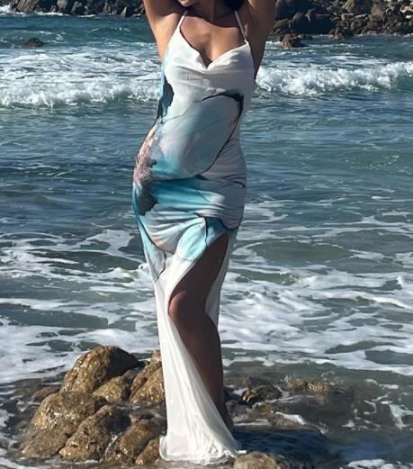 2024春夏新作 女 レディース ハイウエスト 袖なし 吊りスカート ロング ワンピース タイトスカート
