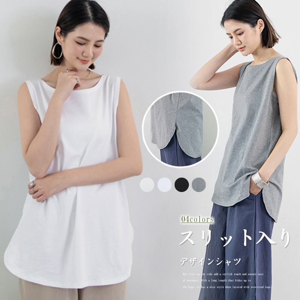 ノースリーブトップス レディース ラウンド裾 ゆったりtシャツ 重ね着 チュニックカットソー ブラ紐が隠せる インナー夏